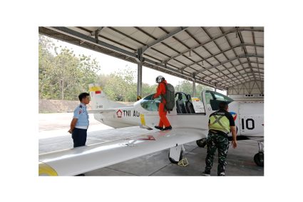 (Pen Kodiklat TNI), Siswa Sekbang 100/PSDP A-34 laksanakan kegiatan terbang perdana dilanjutkan Fixwing menggunakan pesawat Grob di Training Lanud Adisutjipto Yogyakarta, Senin (30/10/2023).