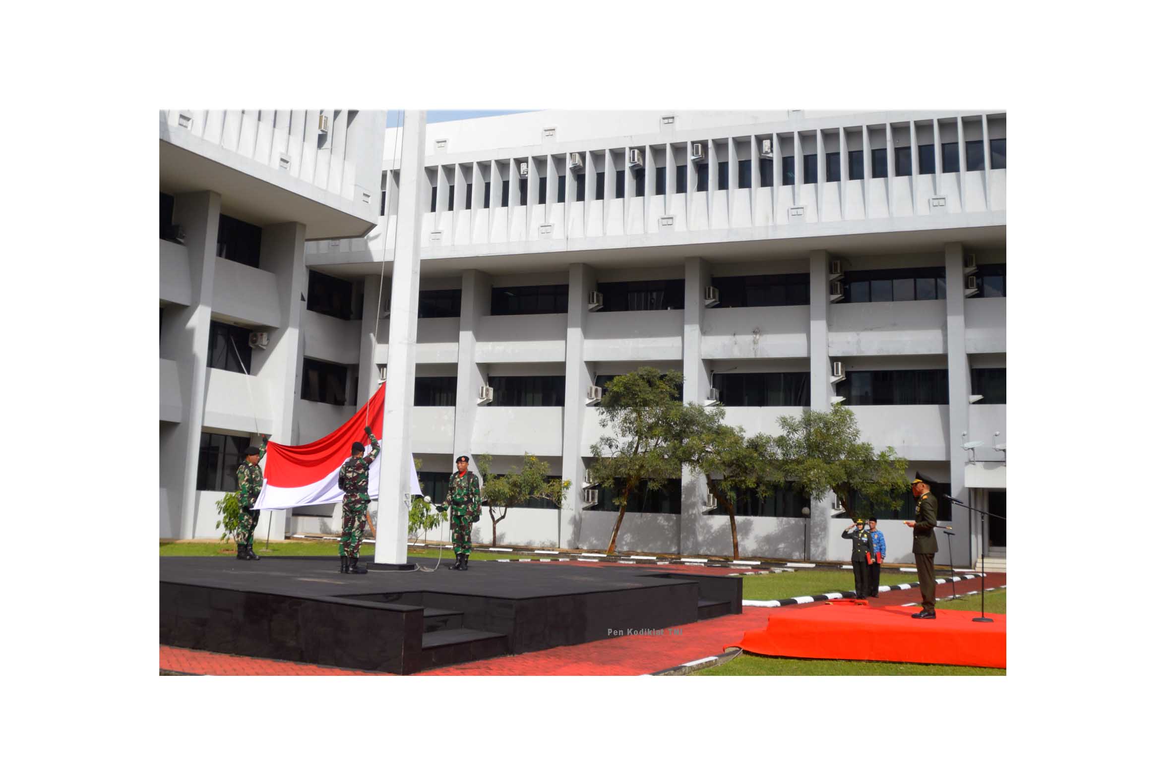 berita informasi(Kodiklat_TNI), Prajurit dan PNS Kodiklat TNI laksanakan upacara peringatan HUT ke-80 Tentara Nasional Indonesia dengan inspektur upacara Komandan Pusat Latihan (Danpuslat) Kodiklat TNI, Marsma TNI Ramot Christian Parlindungan Sinaga, S.E., M.Han. serta dikuti oleh pejabat utama Kodiklat TNI, Serpong Tangerang Selatan, Minggu (5/10/2025).
